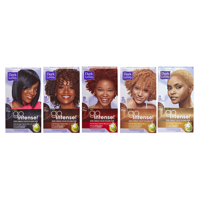 Product title softsheen carson dark and lovely go intense ultra vibrant hair color on dark hair permanent hair dye spicy red 66 packaging may vary average rating. Giving you intense color results. Dark and lovely go intense line offers the perfectly balanced color dyes to deliver intense visible high reflect color that will work on dark hair.