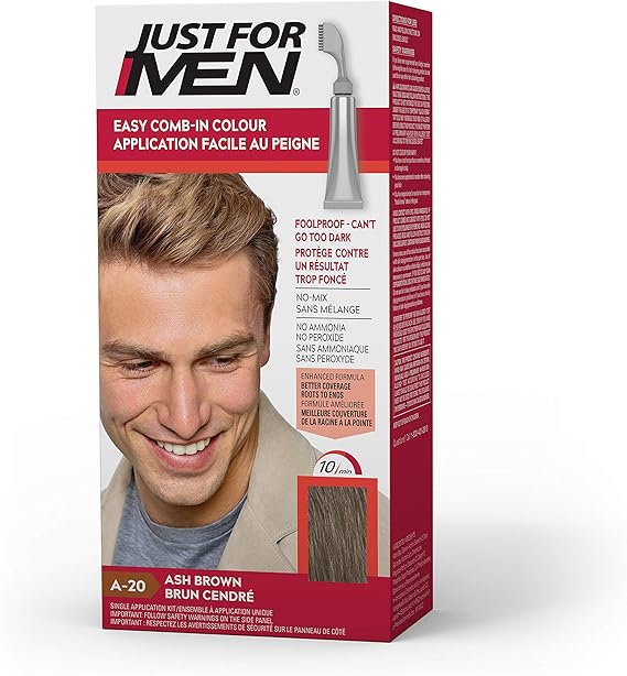 Just For Men Easy Comb In Color Formerly Autostop Gray Hair Coloring For Men With Comb Applicator Ash Brown A 20 Packaging May Vary Amazon Ca Beauty