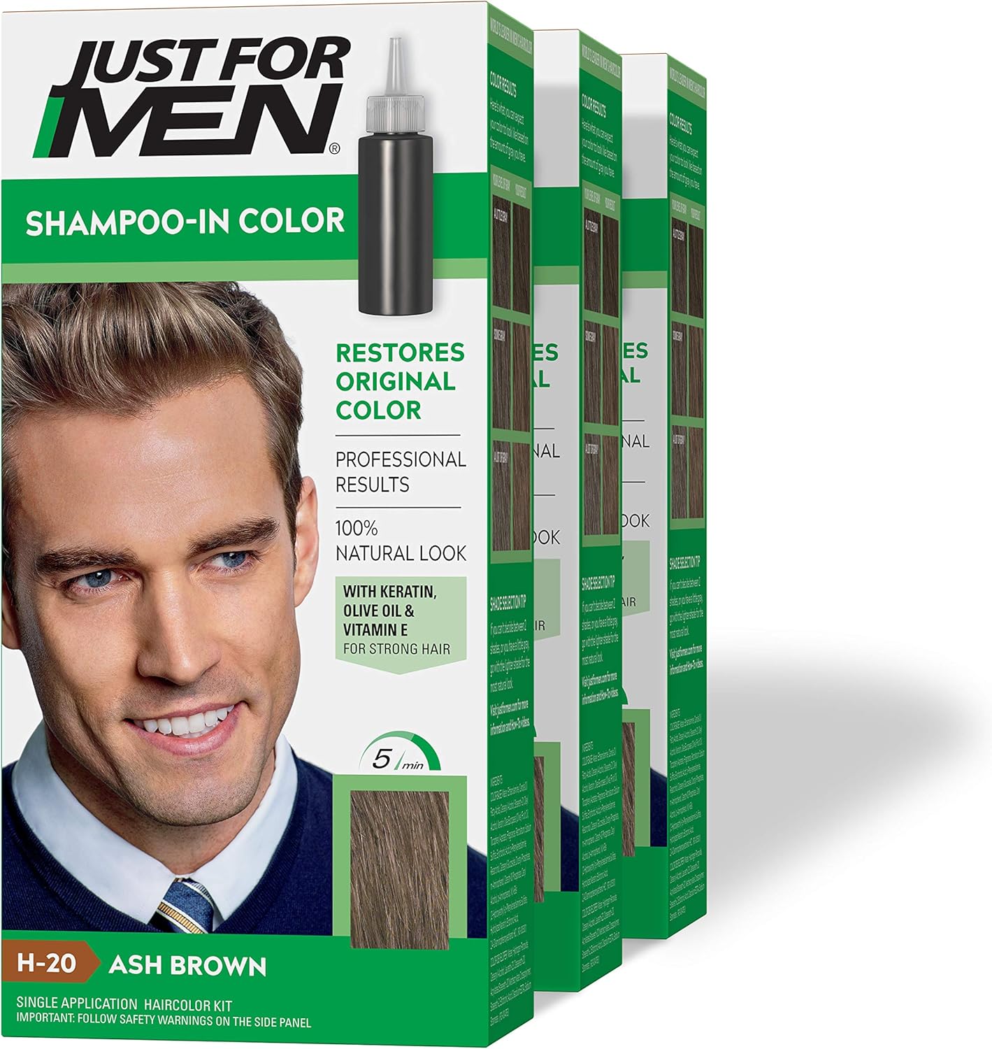 Just for men shampoo in color formerly original formula gray hair coloring for men ash brown h 20 pack of 3 packaging may vary 4 0 out of 5 stars 664 20 97 20. Save more with subscribe save.